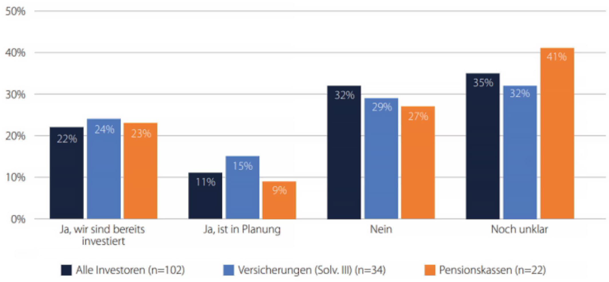 Offene Core Infrastruktur Fonds waren schon lange im institutionellen Bereich gängig, jedoch eröffnen die jüngsten Marktentwicklungen viel mehr Möglichkeiten über alle Anlageklassen hinweg. Wobei knapp ein Drittel eine Investition derzeit ausschließt, sind sich viele Institutionelle noch unsicher, ob Evergreen Fonds für sie in Frage kommen wie beispielsweise 41% der befragten Pensionskassen ist. Generell gilt, ist, dass das Interesse an entsprechenden Fonds zunimmt und entsprechend von vielen Asset Managern aufgenommen wird.3
