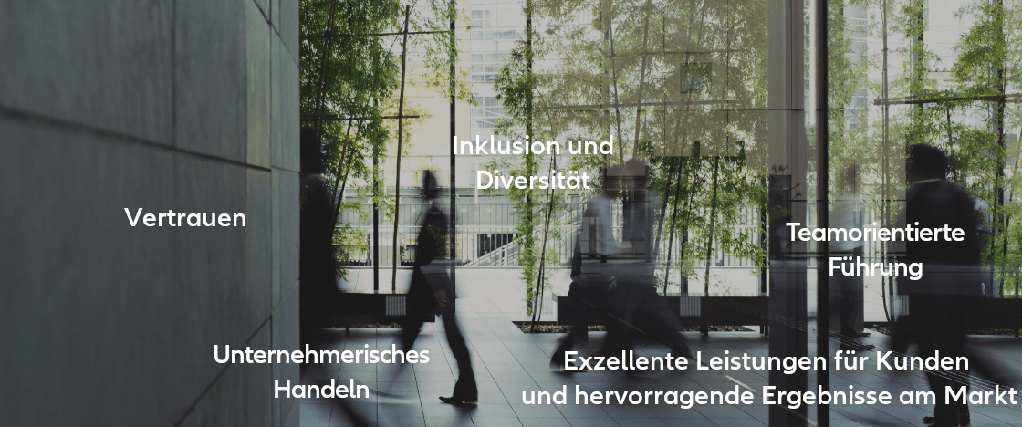 Wir möchten mit unseren Kunden langfristig zusammenarbeiten. Dabei hängt es von unserer Kultur ab, welche Erfahrungen sie mit uns machen. Genau dies macht den Unterschied gegenüber unseren Wettbewerbern aus. Wir fördern eine leistungs- und wertbasierte Kultur und achten daher im Einstellungsverfahren, bei der Festlegung von Zielvorgaben, bei der Beurteilung und bei der Beförderung unserer Mitarbeiter auf die folgenden fünf Punkte: